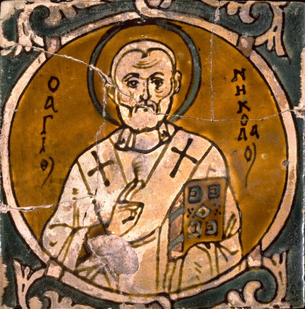 Baltimore, Maryland’deki Walters Sanat Müzesi’nde Aziz Nikolaos, Aziz Panteleimon, Aziz John Prodromos (“öncü”=Vaftizci Yahya) ve iki Başmelek ile Tahta Çıkan İsa’nın yer aldığı çok renkli fayanslar…