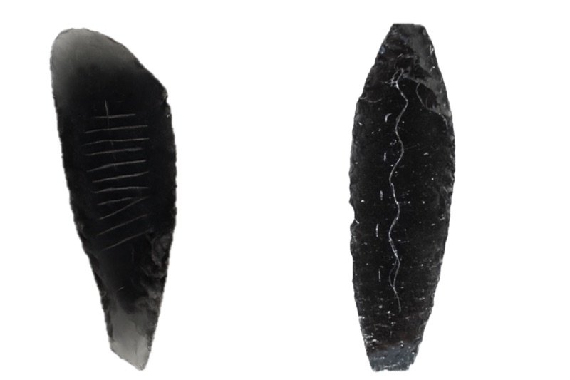 Canhasan’da bulunan üstü çizili obsidyen aletler.